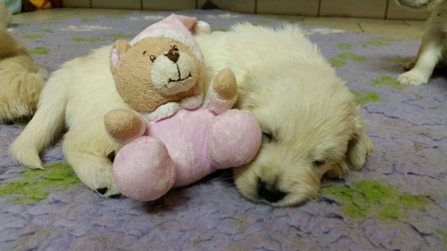 Ruby findet es auch ganz toll das die Welpen jetzt noch mehr Spielzeug haben und schleppt ständig irgendwas herum & auch die Kleinen machen erste Apports mit Miniplüsches & schleppen alles was nicht niet und nagelfest ist durch die Gegend. Einen konnte ich zufällig filmen. Prinzesschen macht auf Grosser Retriever. Zum fressen wie ich finde!