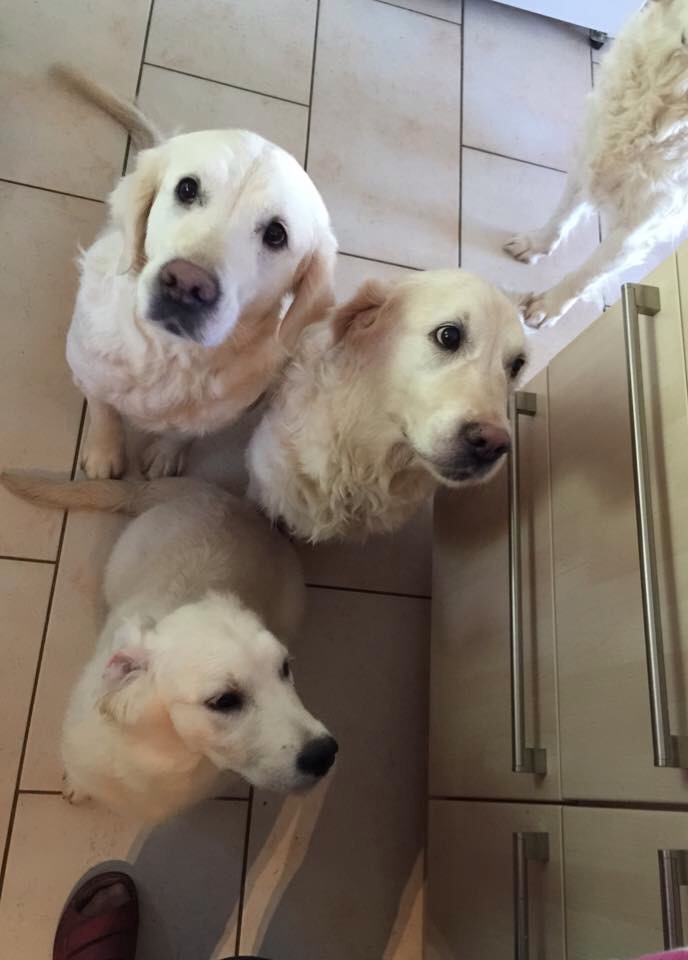 Die 8-linge wachsen und gedeihen ganz wunderbar und haben die 1 Kilo Marke schon längst überschritten. Sie fangen auch langsam an sich gegenseitig zu beissen und miteinander zu spielen..... und zu Not spielen sie auch mit dem Welpensitter! :) Besuch in Form unserer 2 "Katerchen" hatten sie auch schon. Montag Nachmittag ist allerdings unsere Ruby…