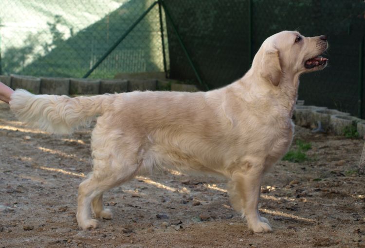 „Beurteilung: die äußerst temperamentvolle 18 Monate alte Hündin zeigte einen stark ausgeprägten Spieltrieb. Sie ist sehr aufmerksam und ausdauernd im verfolgen vom Zielen. Die Hündin zeigt körperliche Härte. Ihre jagdlichen Anlagen sind in sehr ausgeprägter Form vorhanden. Die Hündin zeigt einen extrem starken Beutetrieb. Sie hat eine gute Unterordnungsbereitschaft und Bindung. Gegenüber Fremdpersonen verhielt sie sich absolut freundlich und sicher. In der Kreisprobe völlig sicher und unbeeindruckt. Auf dem Parcours absolut sicher und unerschrocken (entwendet den Schirm). Die Hündin ist schussfest. Formwert: „Gute Größe, Vorzüglich geschnittener Kopf, sehr ausdrucksvoll, gutes Pigment, Sehr gutes Gebäude, korrekte Linien und Winkelungen, Sehr gute Bewegung“ Schußtest: sicher + interessiert.“ – Vorzüglich