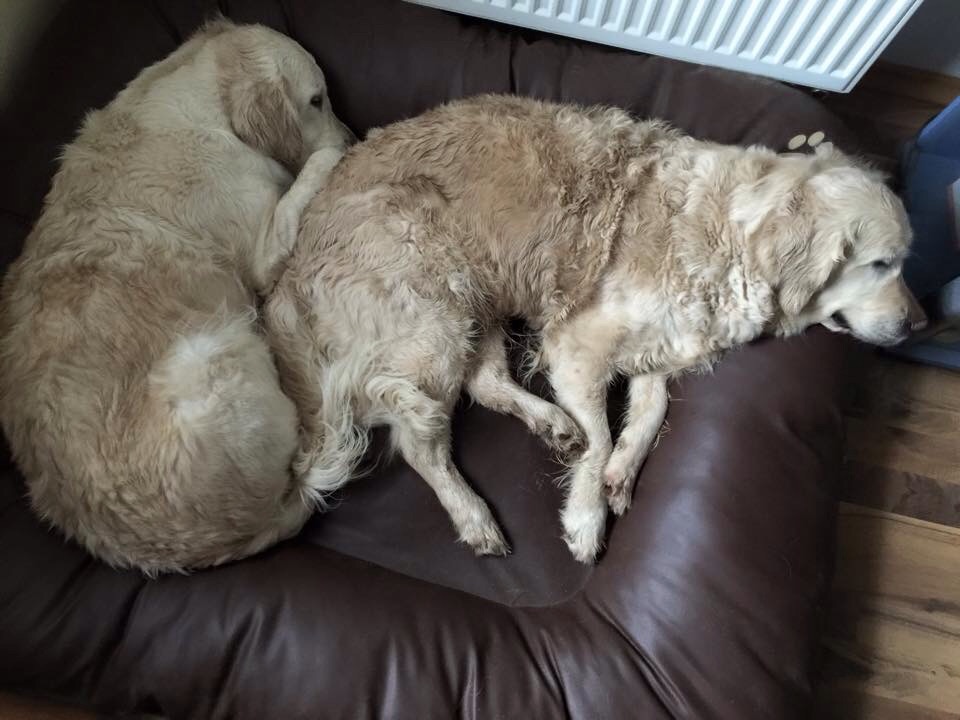 Die GROSSEN Schnee Golden sind übrigens Emily (12), Cookie (9) und Jaimie (1) die auch mal wieder verewigt werden wollten. 😉
